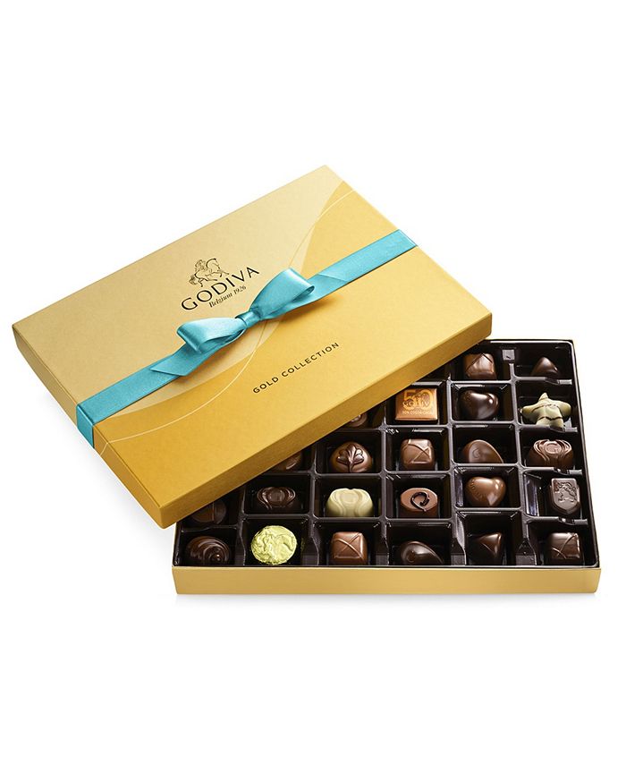 Godiva Assorted Chocolate Gold Collection Gift Box With Blue Ribbon 36 Pieces Reviews Food Gourmet Gifts Dining Macy S